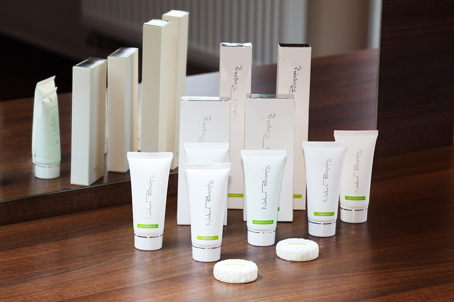 V koupelně naleznete unikátní kosmetickou řadou Nature Philosophy, která nabízí vedle kombinace přírodních látek také spojení elegance a čistého designu. Smyslná vůně citrusových plodů a zeleného čaje navozuje neopakovatelnou atmosféru, která zpříjemní Váš pobyt.