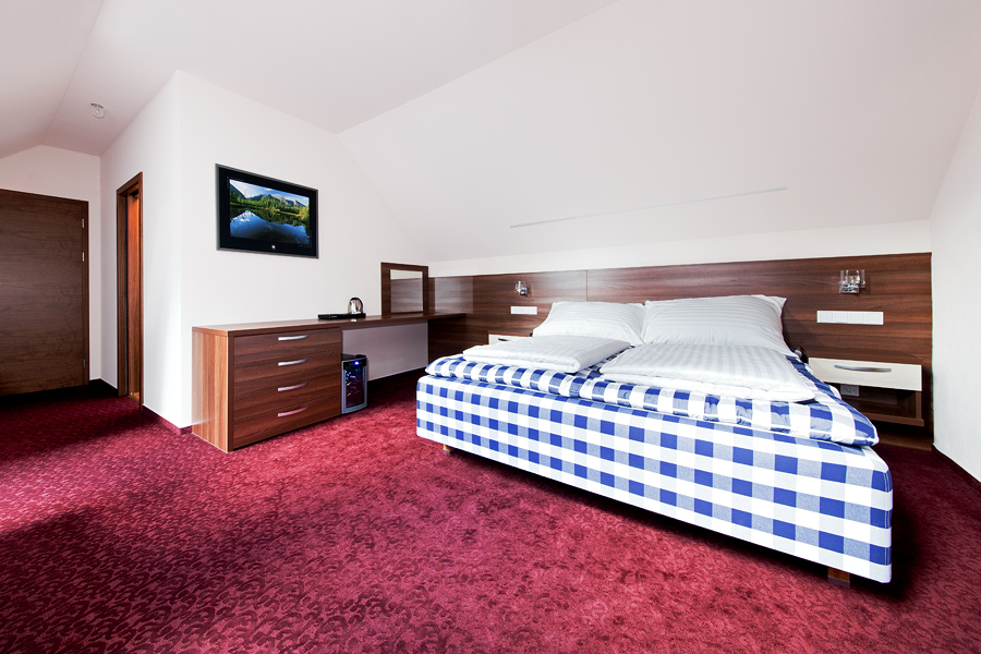 Vybavení pokoje exclusive : trezor, TV, internet, Wi-Fi, minibar, vinotéka na vyžádání, velký sprchový kout s vodopádem a deštěm, pantofle, župan, ručníky, kompletní kosmetika, zubní kartáček, souprava na holení, nazouvací lžíce, střešní okna s žaluziemi na dálkové ovládání, klimatizace